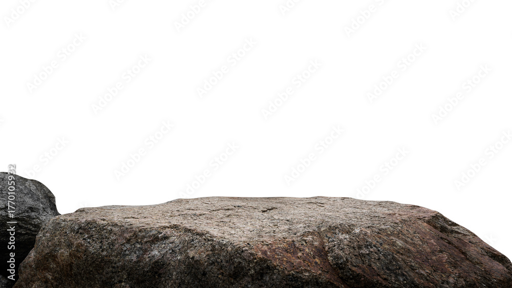 Brown rock stone isolated white background, Cliff mountain hill edge Beige formation well nature podium stand display product presentation, mockup cosmetics, Clipping path