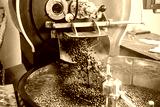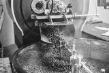 Freshly Roasted Coffee Beans Pouring From the Roaster Into the Cooling Tray in Roasting Facility