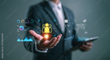 Businessman using AI and data analytics for CRM and customer segmentation. Concept of smart marketing, sales automation, client insights, and customer relationship management with digital technology.
