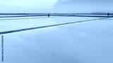 Aerial view of the Trapani salt pans, Sicily, Italy. Panorama of salt evaporation pools.