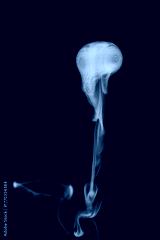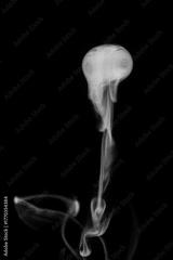 Close-up view of white water vapor with spray from the humidifier. Isolated on black background. steam smoke on black background. White fantasy smoke.