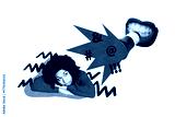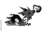 Creative poster collage of sad young female bullying aggression mouth angry unusual fantasy billboard comics zine
