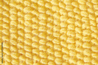 The texture of the knitted fabric is orange. Background of woolen threads.