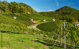 Weinberge am Falkenberg und historische Weinberghäuschen bei Falkenstein, Gemeinde Donnersdorf, Landkreis Schweinfurt, Unterfranken, Franken, Bayern, Deutschland