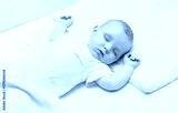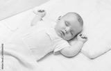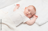 a four-month-old baby sleeping in a bed