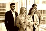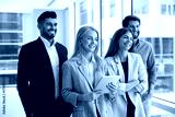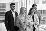 Diverse business team of happy young businesspeople standing together