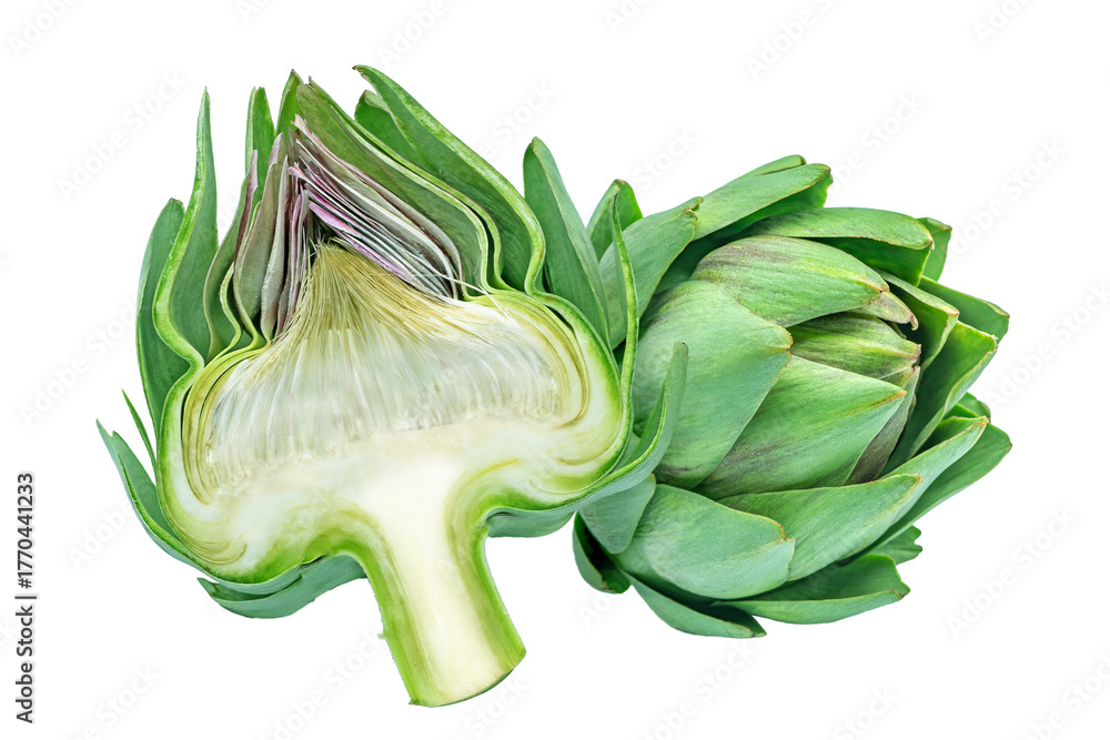 Whole fresh raw artichoke or freshly harvested artichoke isolated.