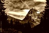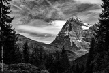 famous Eiger North Wall, mountain in the Swiss Alps, Switzerland, above 4ooo better, in black and white looking up to the iconic mountain