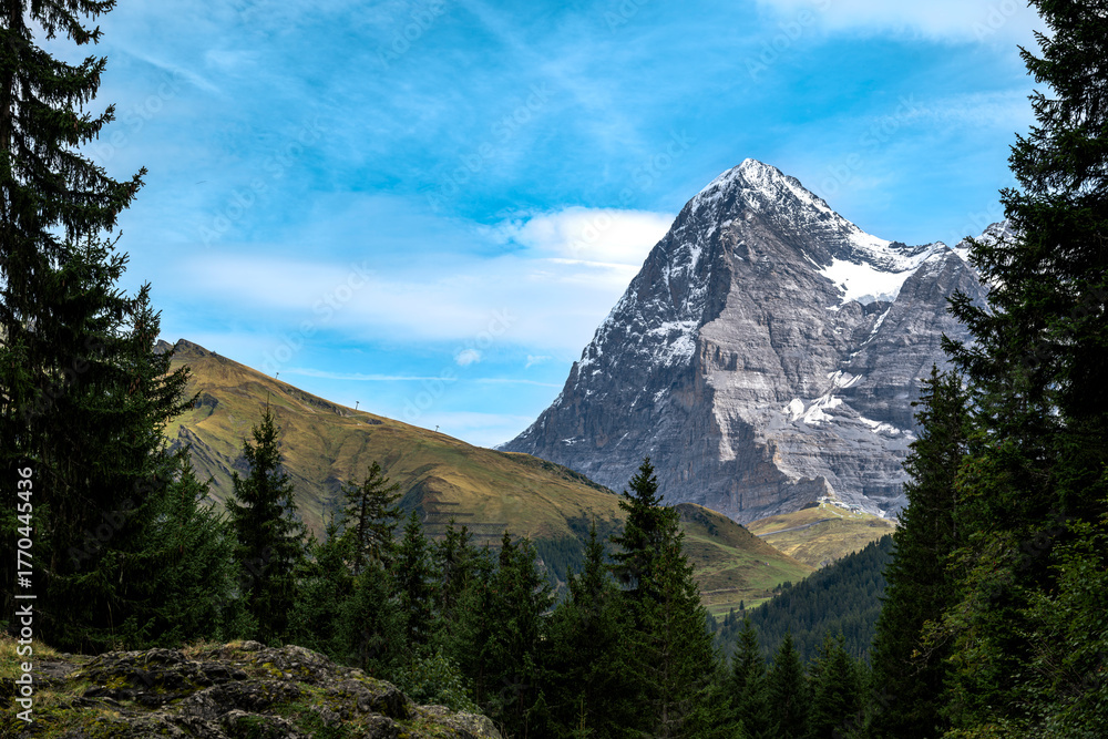 looking up to the mountains, in the Berner Alps, Switzerland, Eiger Mountain, stunning panoramic view