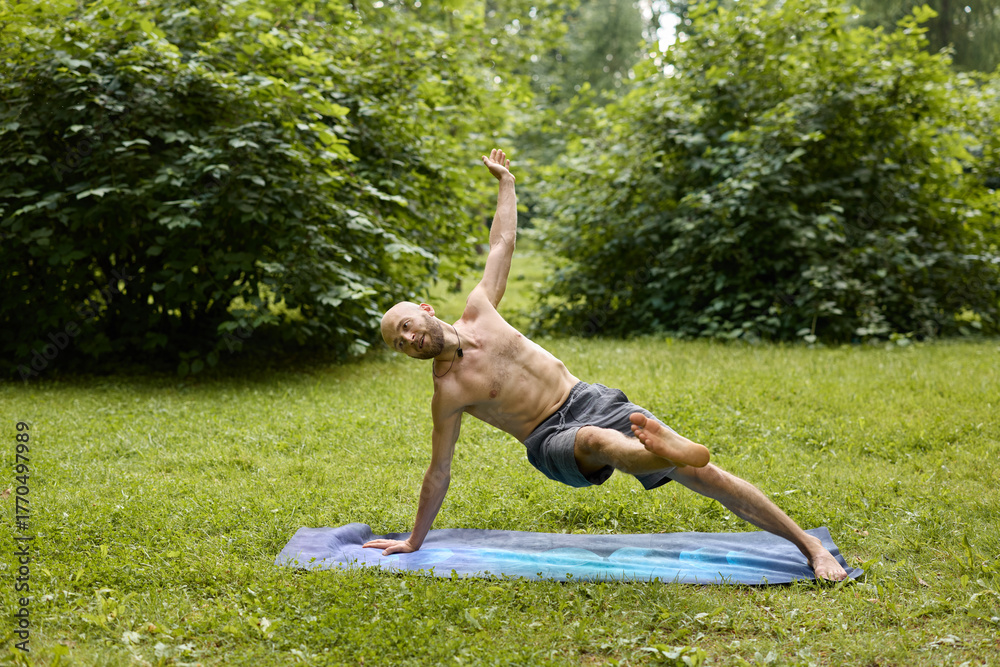 A Man Practicing Yoga Amidst the Peaceful Beauty of Nature and Greenery Around Him