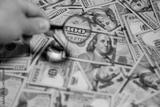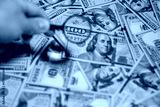 Examining Currency With a Magnifying Glass to Reveal Details on Cash Bills at a Close Range in a Bright Indoor Setting