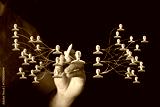 Digital network concept of people connected by lines. Illustrating team, management, social network, business, and concept of cooperation.