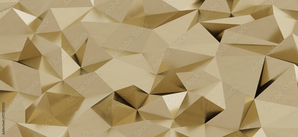 Stylish 3D rendered polygonal background in gold. Perfect for luxury branding, digital art, or elegant presentations.