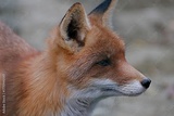 Close-up profile of a fluffy red fox head, autumn colors, photorealistic, sharp focus