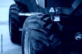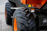 ndustrial vehicle with rugged tires and orange rims emphasizing strength, reliability, and functionality for construction, agricultural, or heavy transport use
