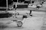 Metal trailer hitch with hand brake lever, coupling mechanism, and small support wheel showing durable galvanized steel construction and precision engineering for towing applications