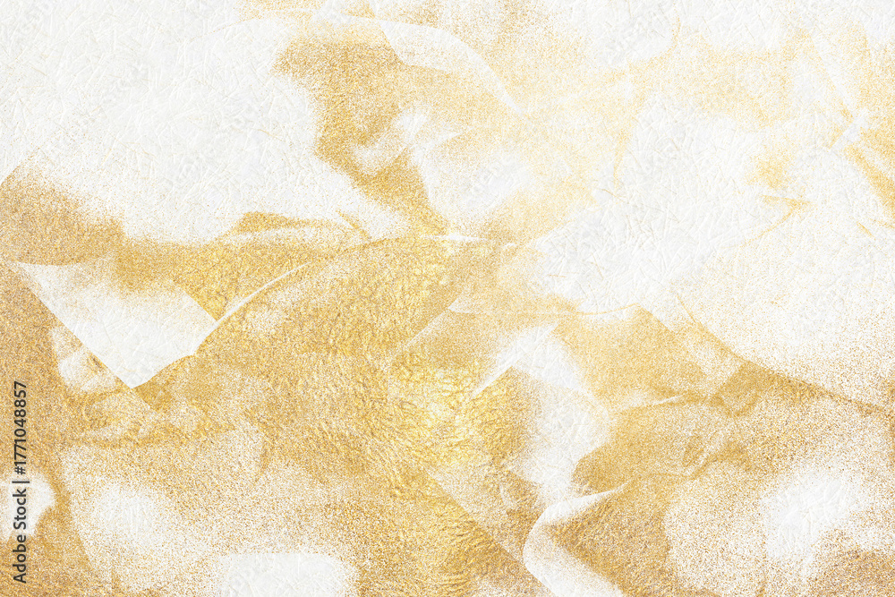 Japanese-style background featuring gold abstract patterns on white Japanese paper texture.