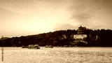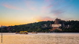 Beautiful sunset view of the Summer Palace with boats on the lake
