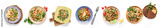 Set of delicious tabbouleh on white background, top view