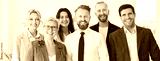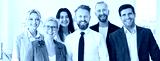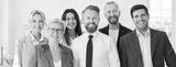Group portrait showcasing happy and smiling coworkers in an office, emphasizing teamwork, professional success, and team collaboration between people within a thriving business community.