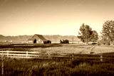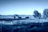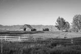 Summer sunset with a red barn in rural Montana and Rocky Mountains