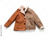 Different warm jackets on white background