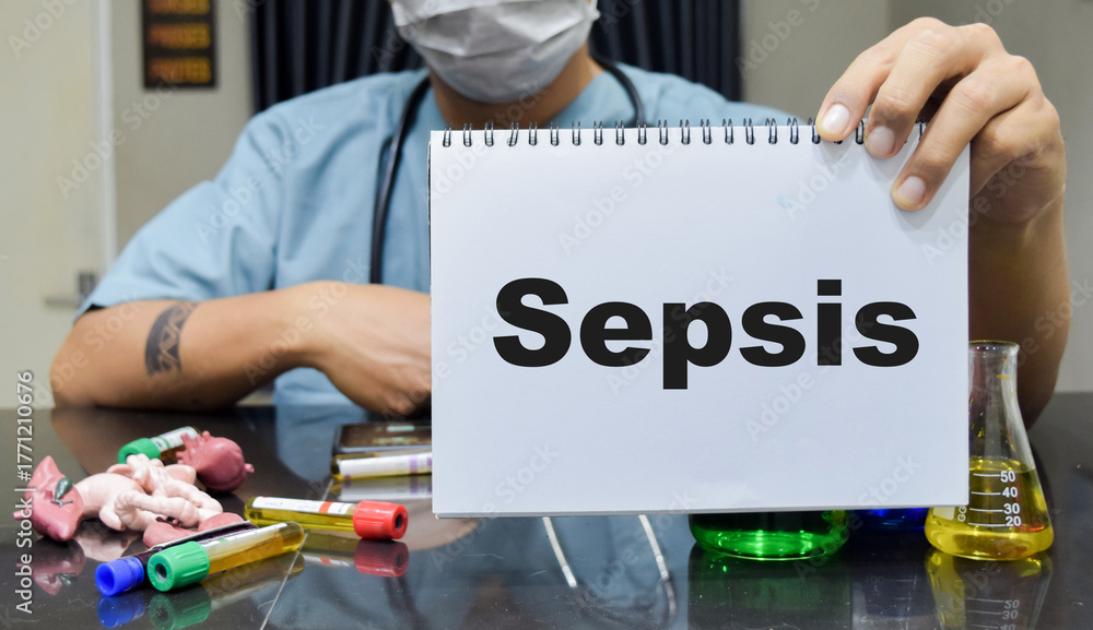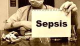 A laboratory technician highlights sepsis on a book. scientific research concept