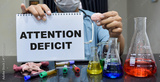 A laboratory technician hold a book with attention deficit text. scientific research concept