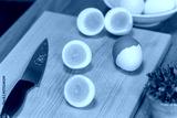 ゆで卵を包丁で半分に切る