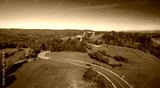 Aerial drone view of amazing autumn colors in fall landscape. Brkini, Slovenia