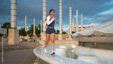 Woman running outdoors in Barcelona urban area