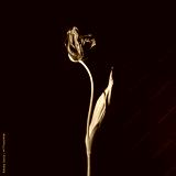 Individual spring tulip with variegated coloring on bold black backdrop