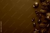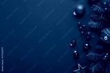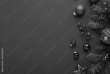 Merry Christmas and Happy Holidays greeting card, frame, banner. New Year. Noel. Red Christmas ornaments on green background top view. Winter xmas holiday theme. Christmas tree decoration.