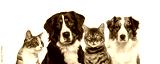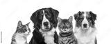 Group of pets looking at camera, transparent background