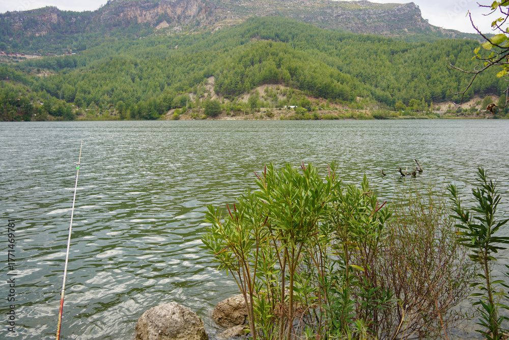 lake in the mountains in summer and fishing