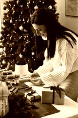 Delightful moments of wrapping gifts while celebrating the festive spirit of Christmas