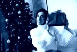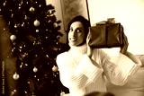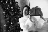 Joyful celebration of Christmas with festive decor and gift giving by the cheerful woman