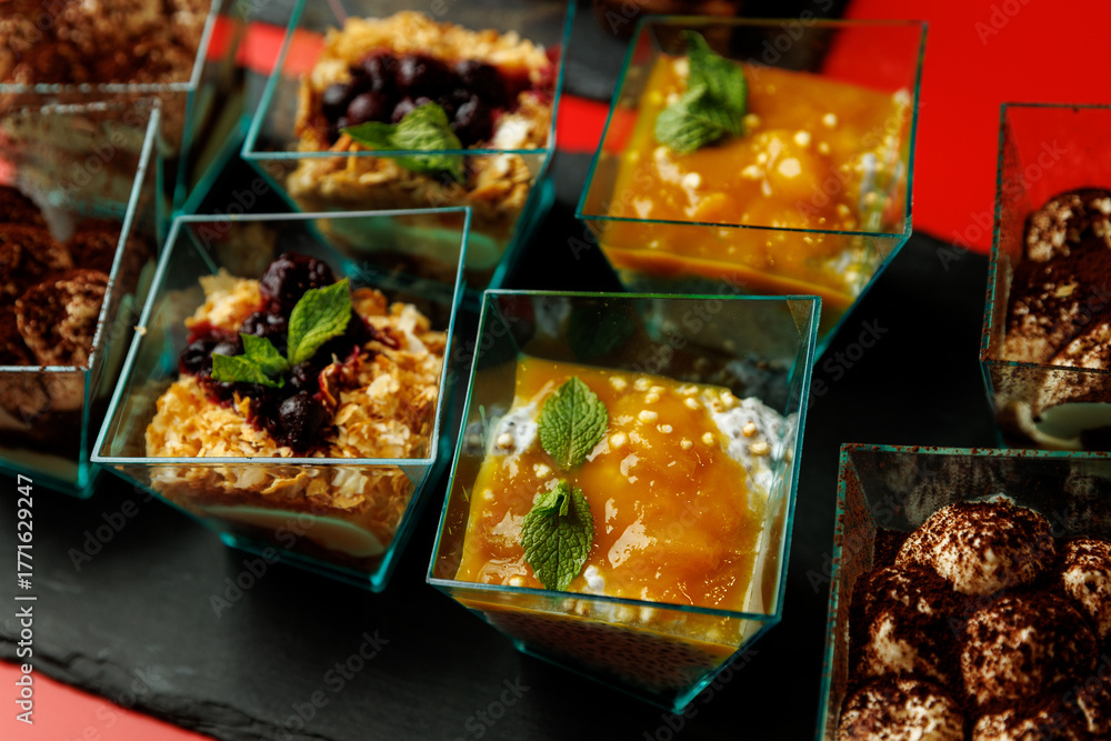 Mini dessert cups with fruit and cream layers