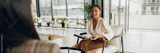 Two experienced professionals engage in a lively and dynamic business discussion within a modern workspace