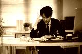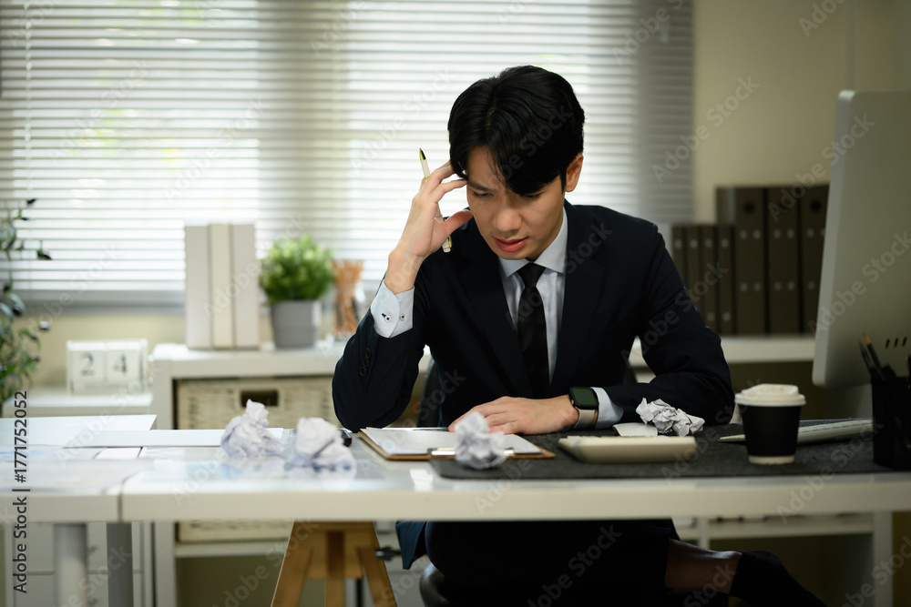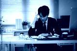 Professional accountant feeling pressure during audit work, showing signs of fatigue and burnout in the office