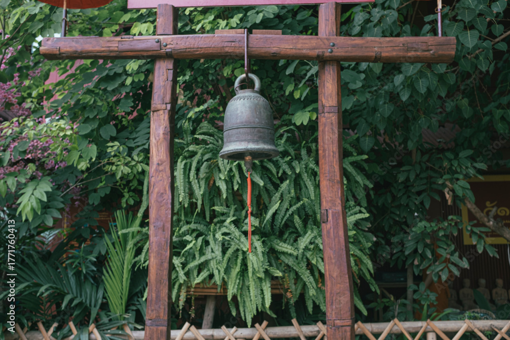 Ancient iron bell on a religious old temple in Chiang Rai, Thailand