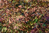 Colorful autumn leaves create a vibrant display in a sunny park during early fall