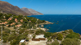 Aerial view of the Zingaro Nature Reserve, in the province of Trapani, Sicily, Italy. It is a beautiful coastline overlooking the Mediterranean Sea.