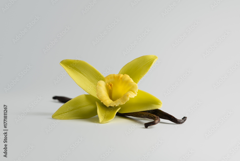 Vanilla Flower and Pods as Natural Aroma and Elegant Minimalism Concept