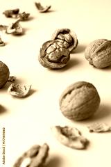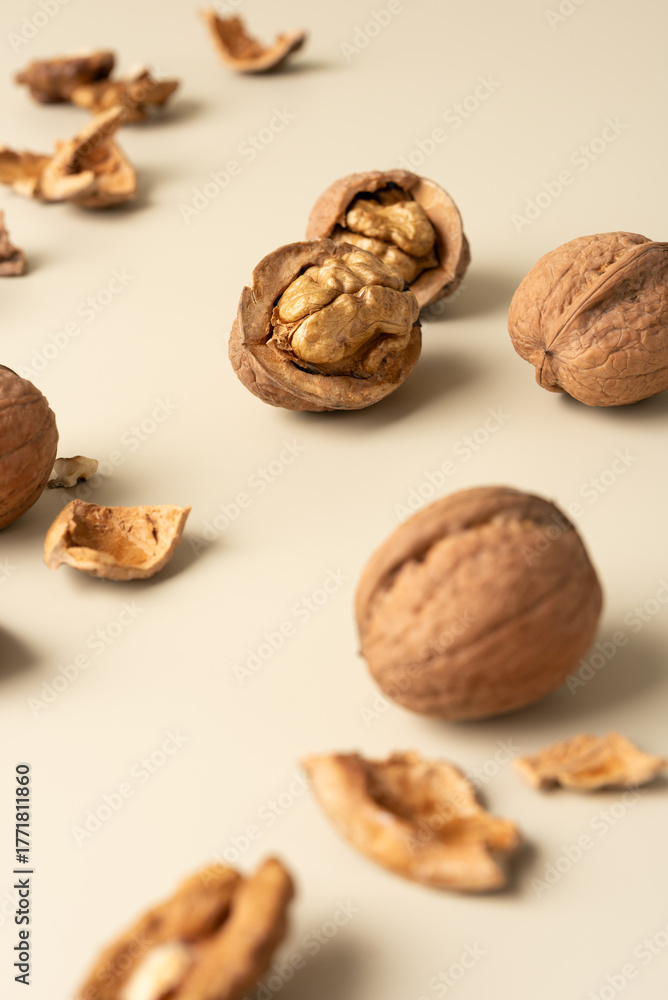 Walnuts and Shells Close-Up for Natural Organic Food and Rustic Simplicity Concept