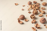 Walnuts and Shells Close-Up for Natural Organic Food and Rustic Simplicity Concept
