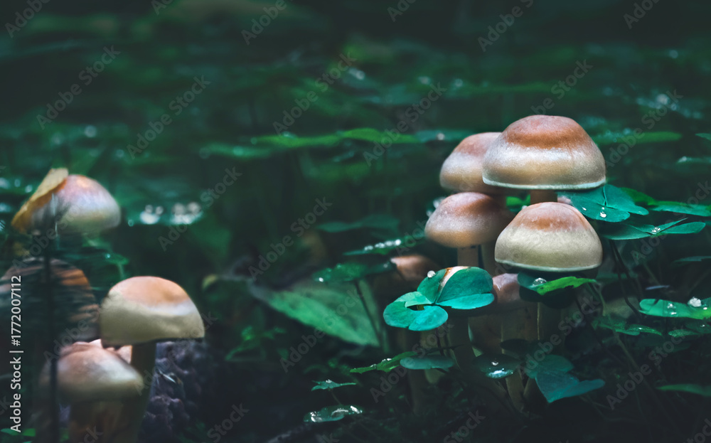 Conifer Tuft Mushrooms (Hypholoma Capnoides) With Clover (Trifolium)