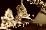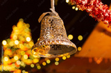 Close-up of decorative Christmas bell with tree lights in Tallinn, Estonia
