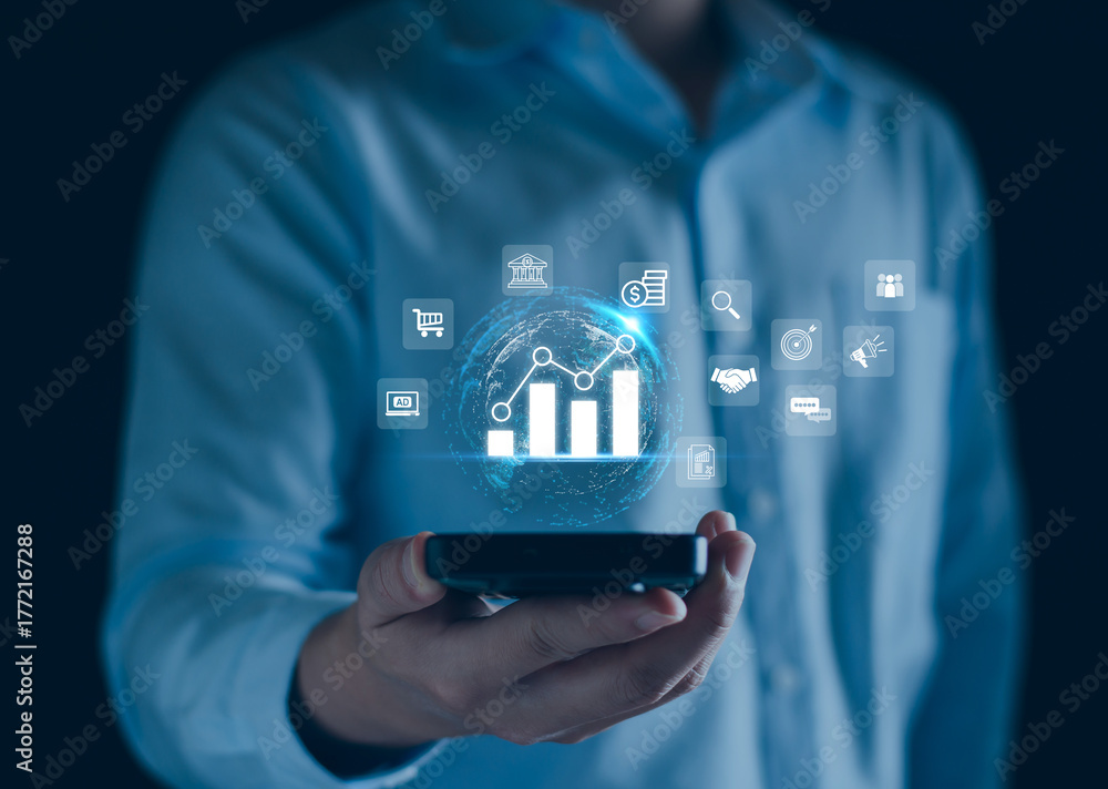 Digital online marketing commerce sale concept, website advertising, Promotion of products or services through digital channels search engine, social media, email, Digital Marketing Strategy and Goals