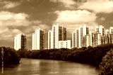 new residential quarter with typical skyscraper buildings among greenery in Santa. Tourism development of Sanya, Hainan island, China
